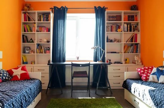 In addition, these colors can be an excellent choice for a bedroom divided by two brothers.